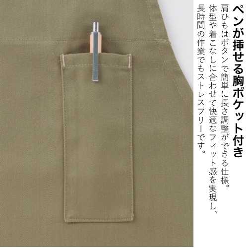 シンプルながらも使いやすさにこだわった胸当てエプロン。
